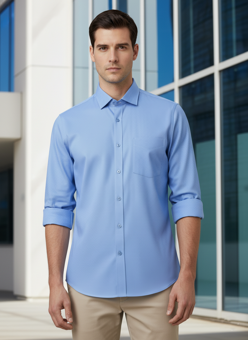 Blue Micro-Checks Shirt – Poly-Cotton | Classic Edit