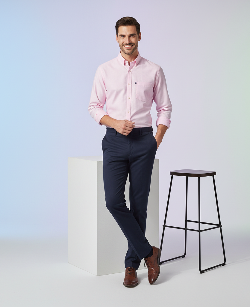 With a spread collar, full sleeves, single chest pocket, and a curved hem, it’s tailored for effortless professionalism and versatile wear.