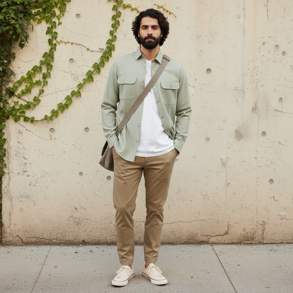 Pastel Green Double Flap Pocket Shirt – Full Sleeves – Snap Button (Jaguar Cotton)